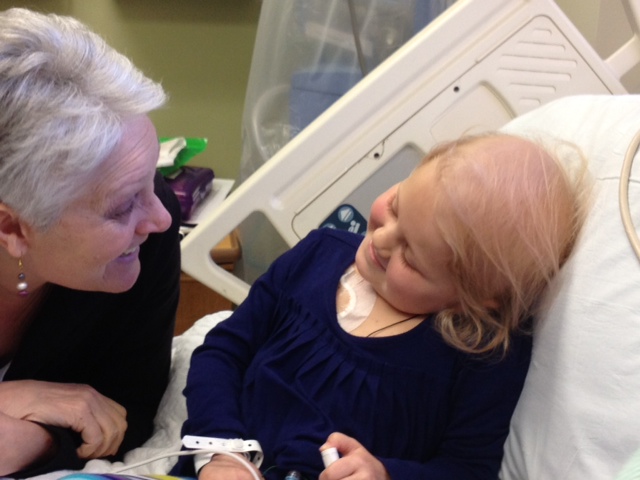 Once settled in her room she was eager to start her homework and did a great job at distracting herself. The time arrived and our beloved nurse Gabby came to the rescue and accessed her port quickly and pain free!!! Olive realized that “hey this isn’t so bad!” We were then greeted by her oncologist, Dr. Fisher and the ICU doctor, Dr. T. The three of them got right to business. Singing silly songs and trying to suction each other up with the wall suction in the room. (Very serious stuff before olive was put to sleep for her procedure…always the perfect touch by this incredible team we have been blessed with.)